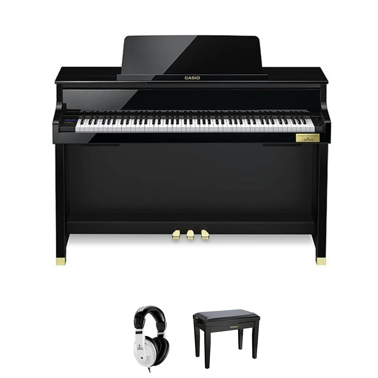 Get everything you need for home piano practice and save a little bit of money at the same time with this handy bundle! Along with the incredible Casio GP-510 digital piano, this bundle includes a stool so you can sit comfortable while you practice and a pair of headphones for when you need to keep the noise down!